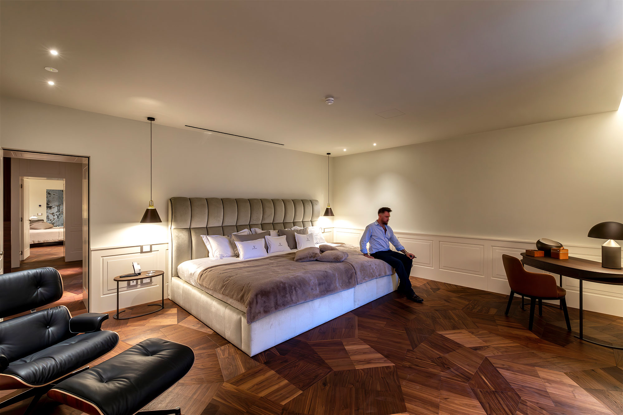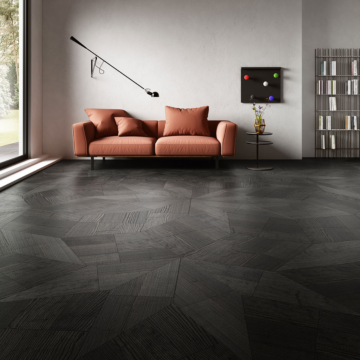 クラシカルな寄木細工床のイメージにとらわれず、フローリングを先鋭的なアートデザインへと進化させたいという想いから生まれました。