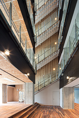 農学部の施設として、建物内外には積極的に木材を活用しています。