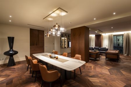 クラシカルな寄木細工床のイメージにとらわれず、フローリングを先鋭的なアートデザインへと進化させたいという想いから生まれました。